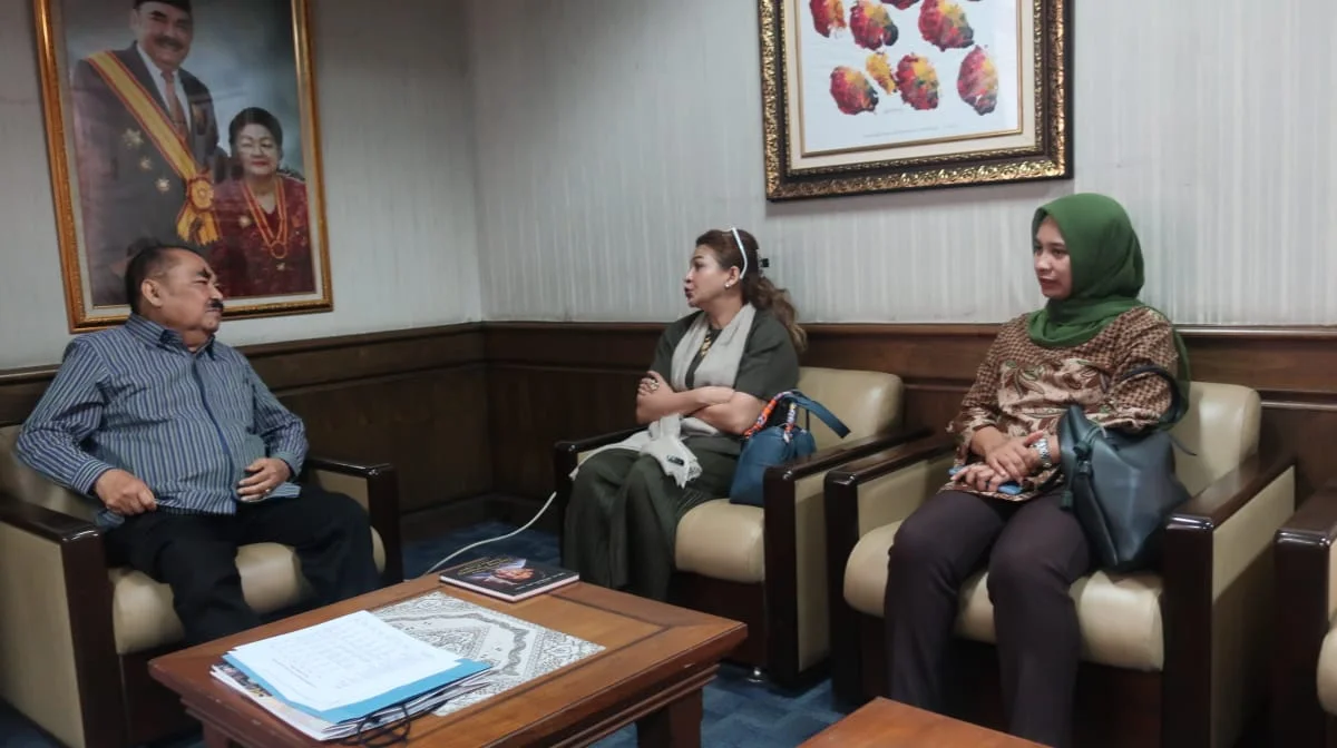 Suasana santai namun serius tampak terlihat saat perbincangan berlangsung antara Ketua INKOWAPI Ir Hj Sharmila, MSi dengan Ketua Tim Pakar Kementerian Desa Prof Dr Haryono Suyono.