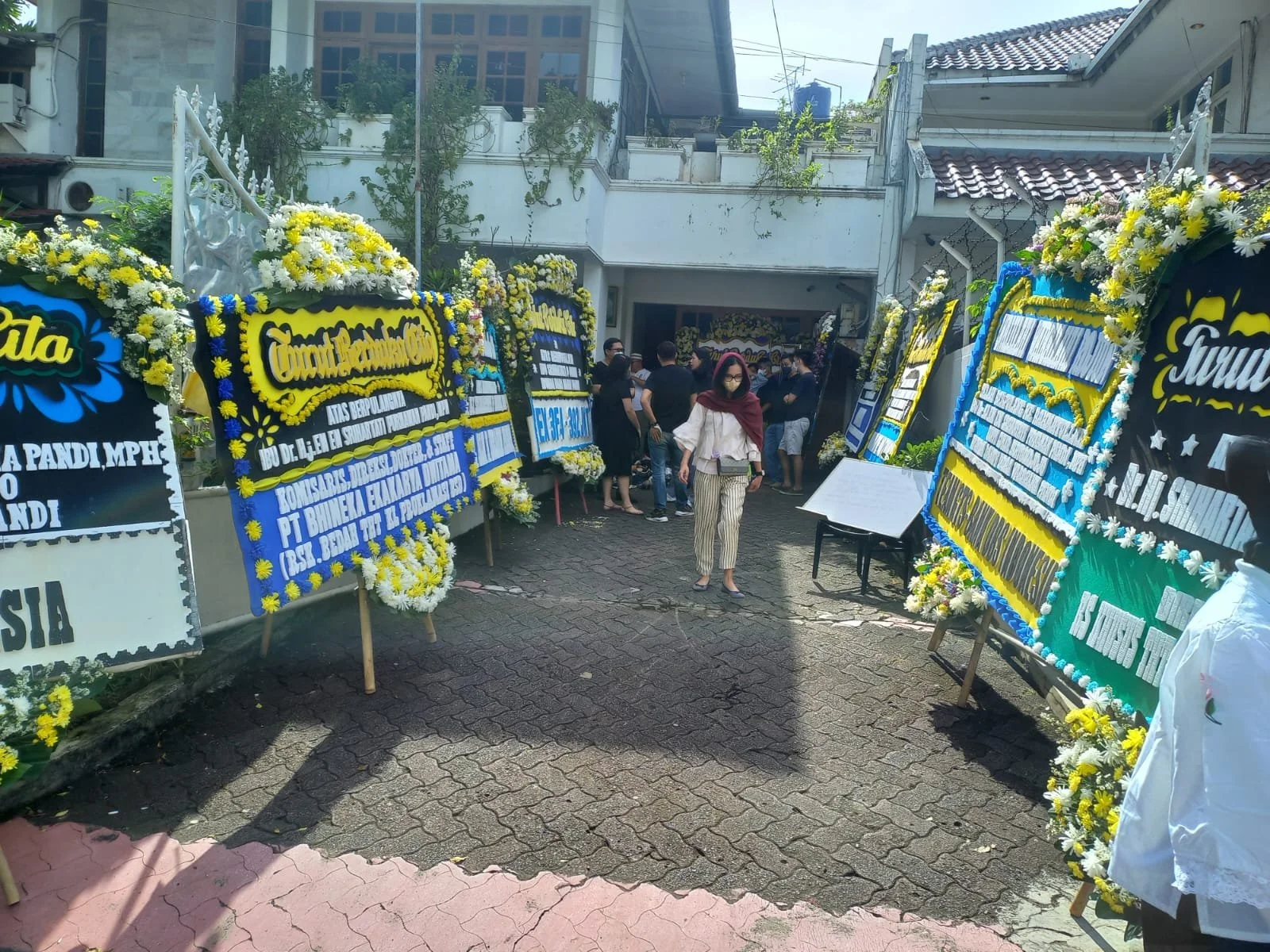Terlihat banyak sekali karangan bunga yang dikirim oleh para sahabat dan mitra kerja almarhumah Ibu dr Srihartati P Pandi, MPH