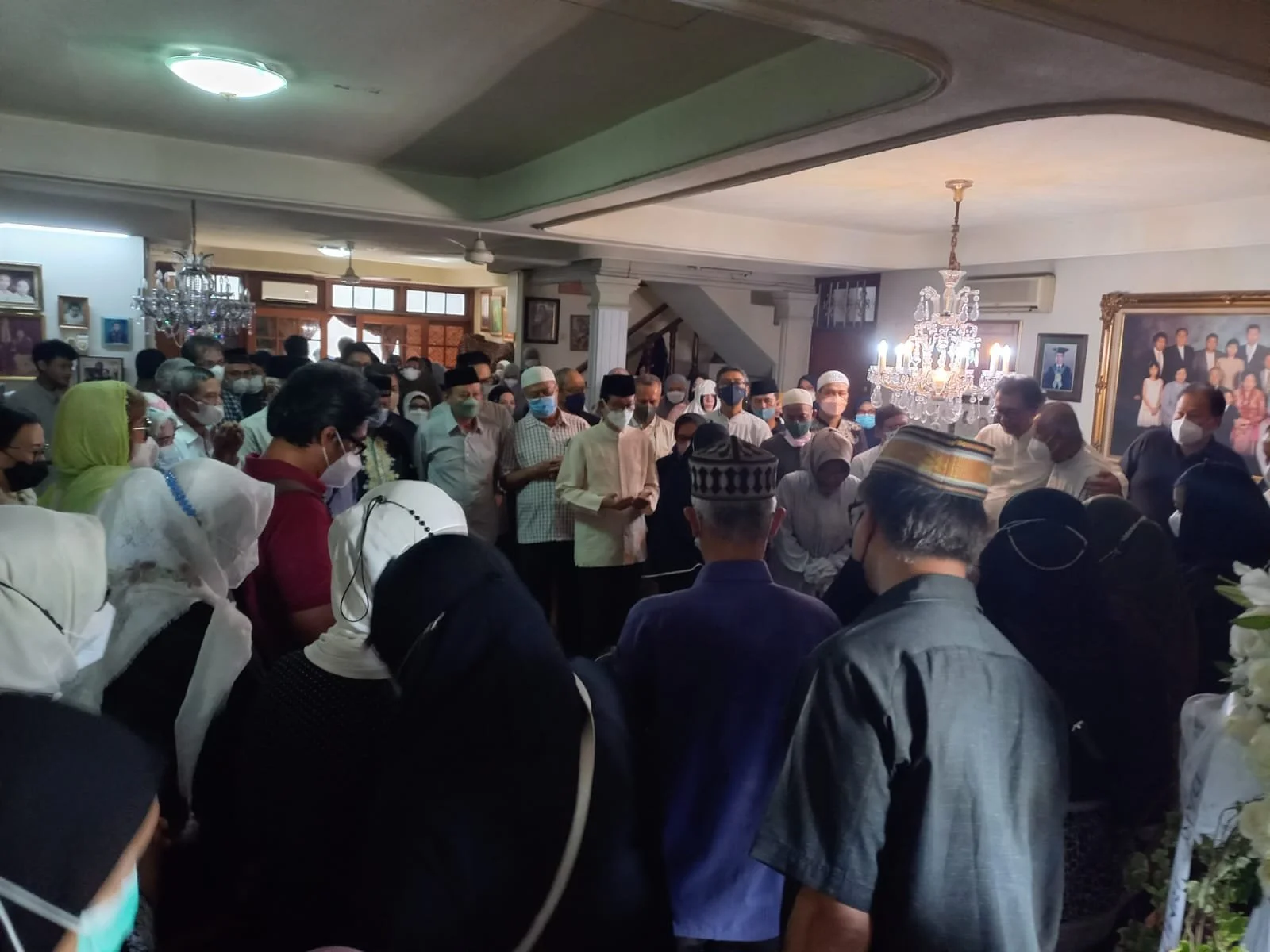Suasana di rumah duka di Jl. Sekolah Kencana II Nomor 14 Pondok Indah Jakarta Selatan saat para pelayat mendoakan almarhumah sebelum diberangkatkan ke pamakaman