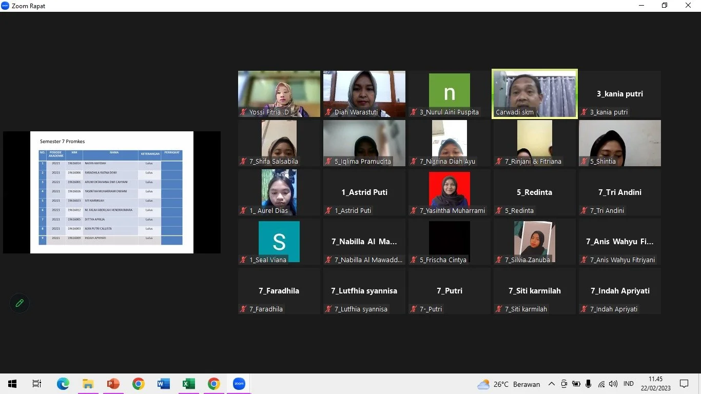 Menurut Ibu Diah sapaan akrab Kaprodi Kesehatan Masyarakat menjelaskan, hari ini Rabu 22 Februari 2023, dengan dihadiri oleh pimpinan STIKes MRHJ dan 19 dosen dan tim pengajar Prodi Sarjana Kesehatan Masyarakat telah diumumkan secara daring oleh Koordinator Kurikulum dan Evaluasi, Carwadi, SKM, MKM, bahwa seluruh mahasiswa prodi Kesehatan Masyarakat STIKes Mitra RIA Husada Jakarta dinyatakan lulus 100% dan mereka para mahasiswa berhak dan dapat melanjutkan kuliahnya pada semester berikutnya, yaitu semester Genap Tahun Ajaran 2022-2023 dengan melengkapi persyaratan administrasi yang berlaku, katanya.