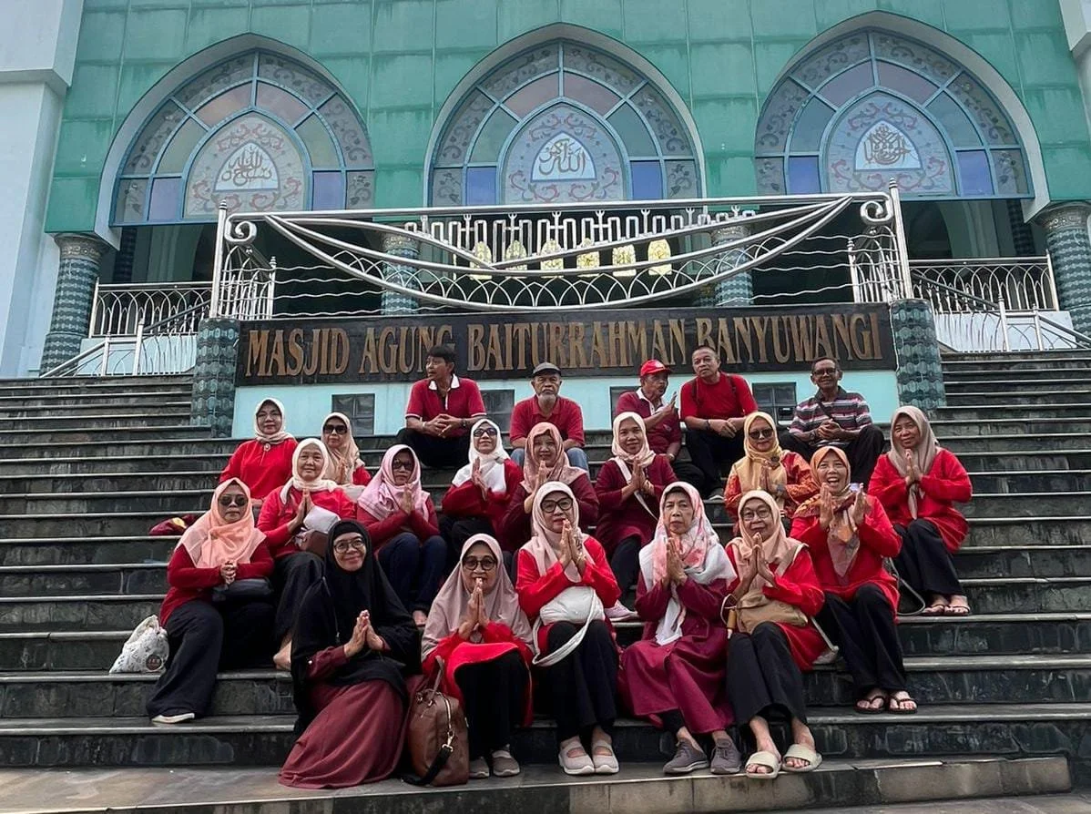 Berkesempatan untuk berfoto bersama di depan Masjid Baiturrahman, Banyuwangi