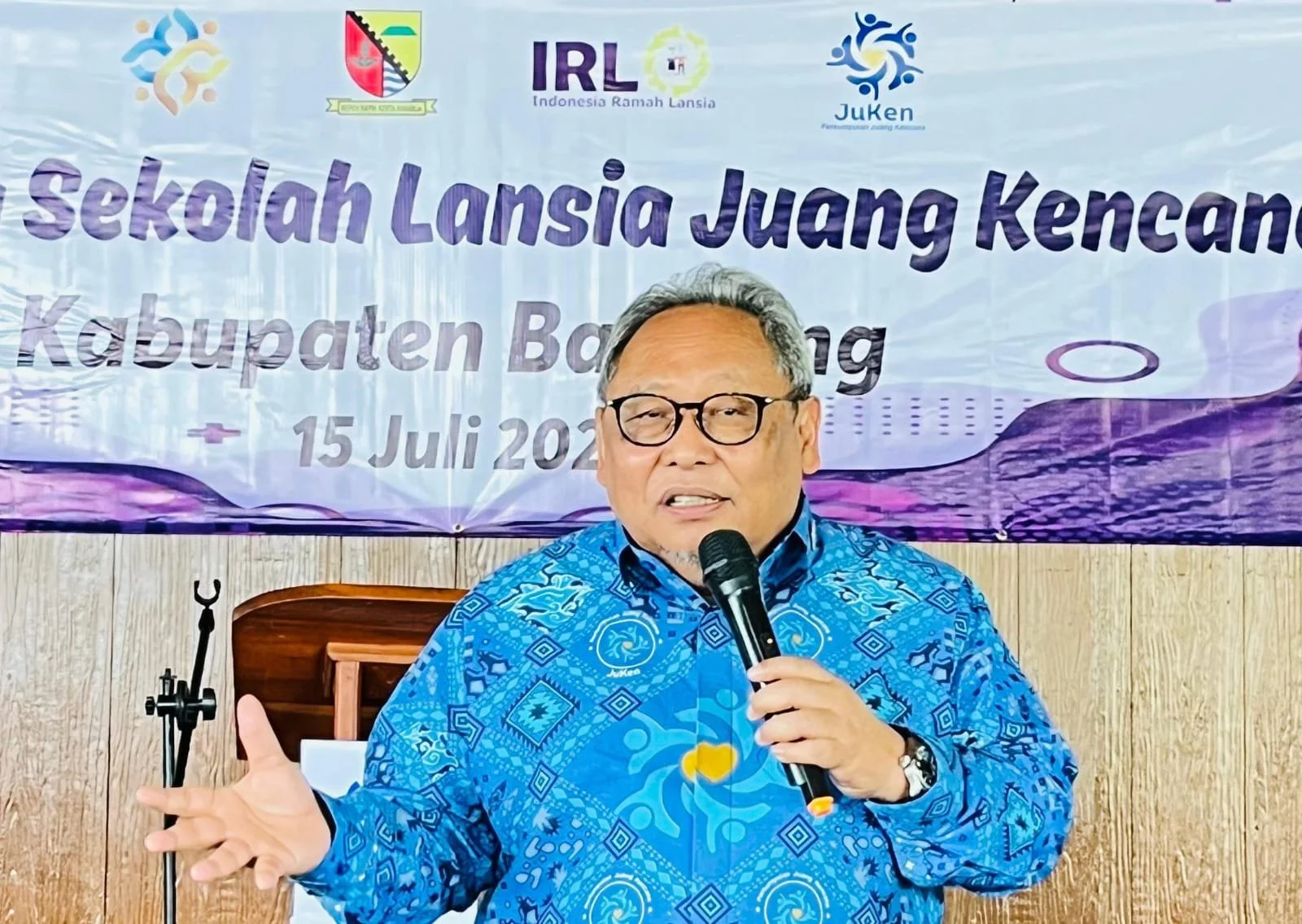 GEMARI.ID-BANDUNG BARAT. Ketua Umum Perkumplan Juang Kencana (JuKen), Dr Sudibyo Alimoeso, MA, pada tanggal 15 Juli 2055 lalu diundang untuk memberikan kuliah perdana pada pembukaan Sekolah Lansia Juang Kencana di Kabupaten Bandung, Jawa Barat. Kepada tim gemari.id Ketum Juang Kencana menyampaikan, bahwa Sekolah Lansia Juang Kencana, ini merupakan kerjasama Indonesia Ramah Lansia Jawa Barat dengan Kementerian Kependudukan dan Pembangunan Keluarga/BKKBN Provinsi Jawa Barat dan utamanya di Kabupaten Bandung. Kamis (24/07/2025).