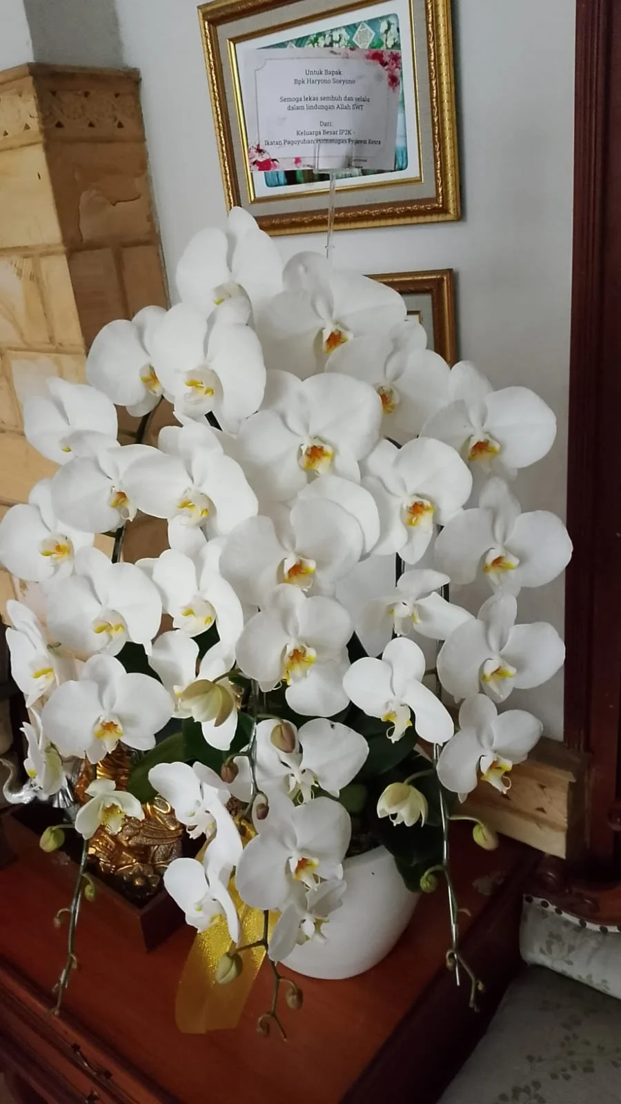 GEMARI.ID-JAKARTA. Malam Minggu kemarin saya menerima kiriman bunga anggrek putih dari paguyuban purna tugas pensiunan Kemenko Kesra disertai doa agar cepet sembuh. Terima kasih atas bunga dan doanya, demikian disampaikan Prof Dr Haryono Suyono di kediamannya di kawasan Pancoran, Jakarta Selatan.