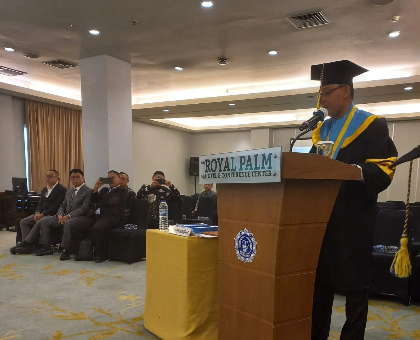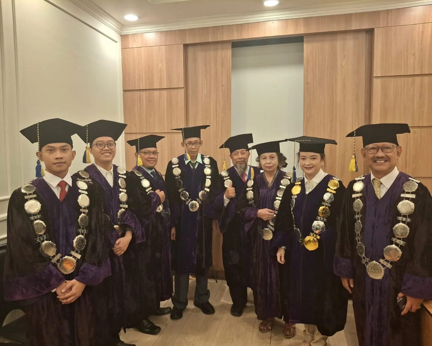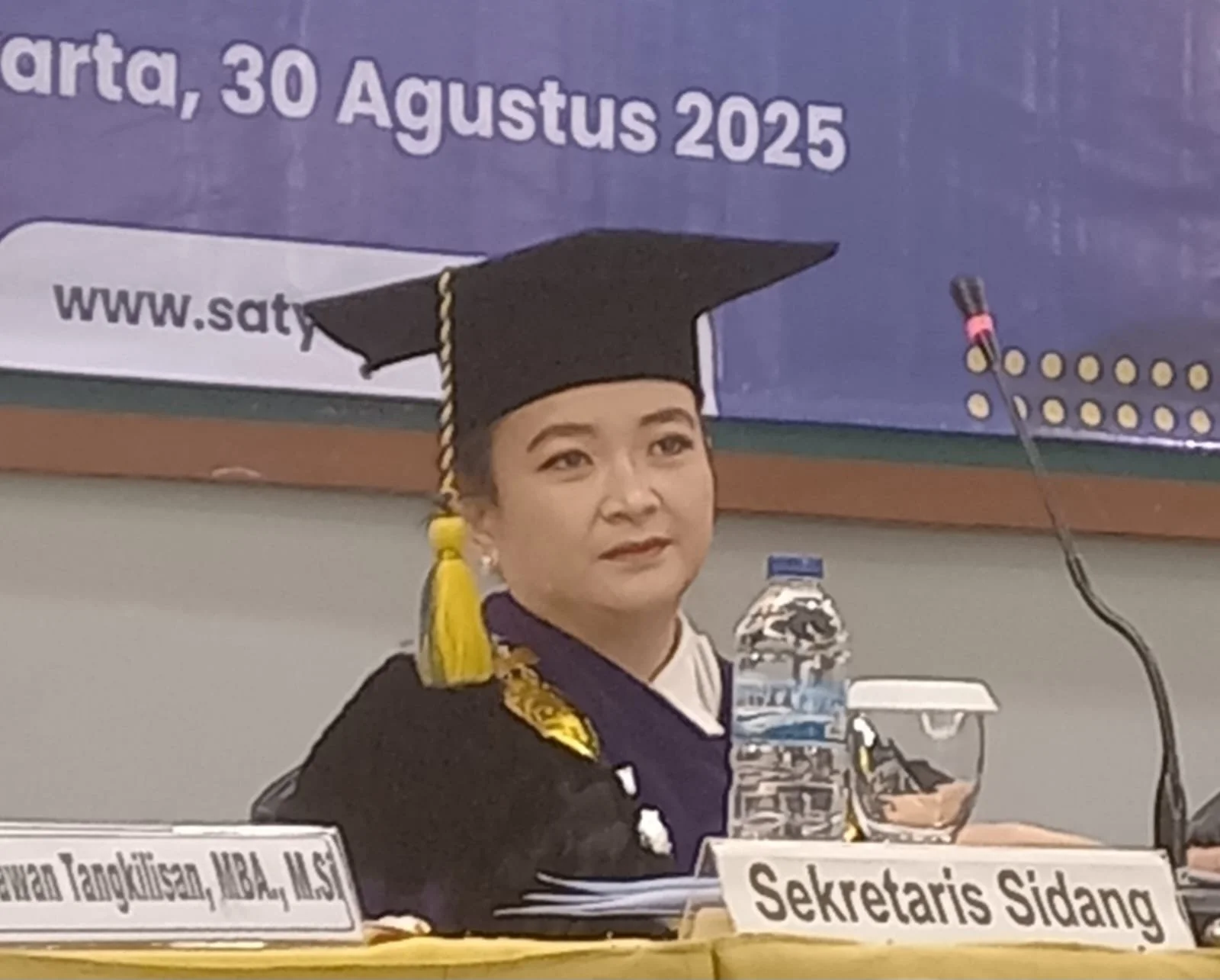 Sebenarnya yang bersangkutan sudah lulus ujian di tahun 2021, kemudian di tahun 2022 setelah ada Covid, ada perubahan dia memperbaiki lagi, tanpa kita suruh pun ia tetap melakukan perbaikan-perbaikan. Sebenarnya lulusnya di tahun 2022, hanya saja karena sibuknya, belum sempat maju Sidang Terbuka dan baru tahun 2025 ini ia bisa maju pada Sidang Terbukanya, jelas Dewi.