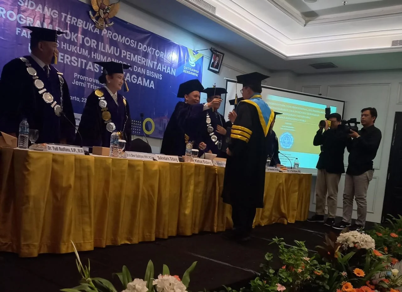 GEMARI.ID-JAKARTA. Universitas Satyagama kemarin menggelar Sidang Terbuka Promosi Doktor atas nama Promovendus, Marsekal Muda TNI Jemi Trisonjaya, dengan Promotor Prof Dr Yosi Adiwisastra dan Co-Promotor, masing-masing Dr Ir Dewi Sulistyani, MM, MSi dan Dr Yudi Rusfiana, S.IP, M.Si. Sidang terbuka ini menghadirkan 3 oponen ahli sebagai tim penguji diantaranya, Prof Dr Budi Supriyatno, MM, MSi, Dr Rahimullah, SH, MSi dan Dr Ir Murdiyono, MSi. Selain itu hadir pula beberapa anggota senat Universitas Satyagama dan tamu undangan. Selasa (23/09/2025).