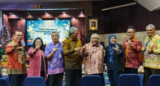 GEMARI.ID-JAKARTA. Kementerian Kependudukan dan Pembangunan Keluarga/BKKBN hari ini menggelar perayaan Natal 2025 dan Tahun Baru 2026 di Auditorium BKKBN di kawasan Halim Perdanakusuma, Jakarta Timur. Hadir dalam acara tersebut Menteri Dr Wihaji, SAg, MPd dan Wakil Menteri, para pejabat BKKBN Pusat dan para undangan diantaranya Pengurus Pengurus Perkumpulan Juang Kencana atau JuKen. Dari JuKen yang hadir antara lain Ketua Umum JuKen, Dr Sudibyo Alimoeso, MA, Dewan Pengawas, Saut Munthe, SH, Sekretaris Umum, Dra Sri Rahayu, MSi dan beberapa pengurus pusat lain.