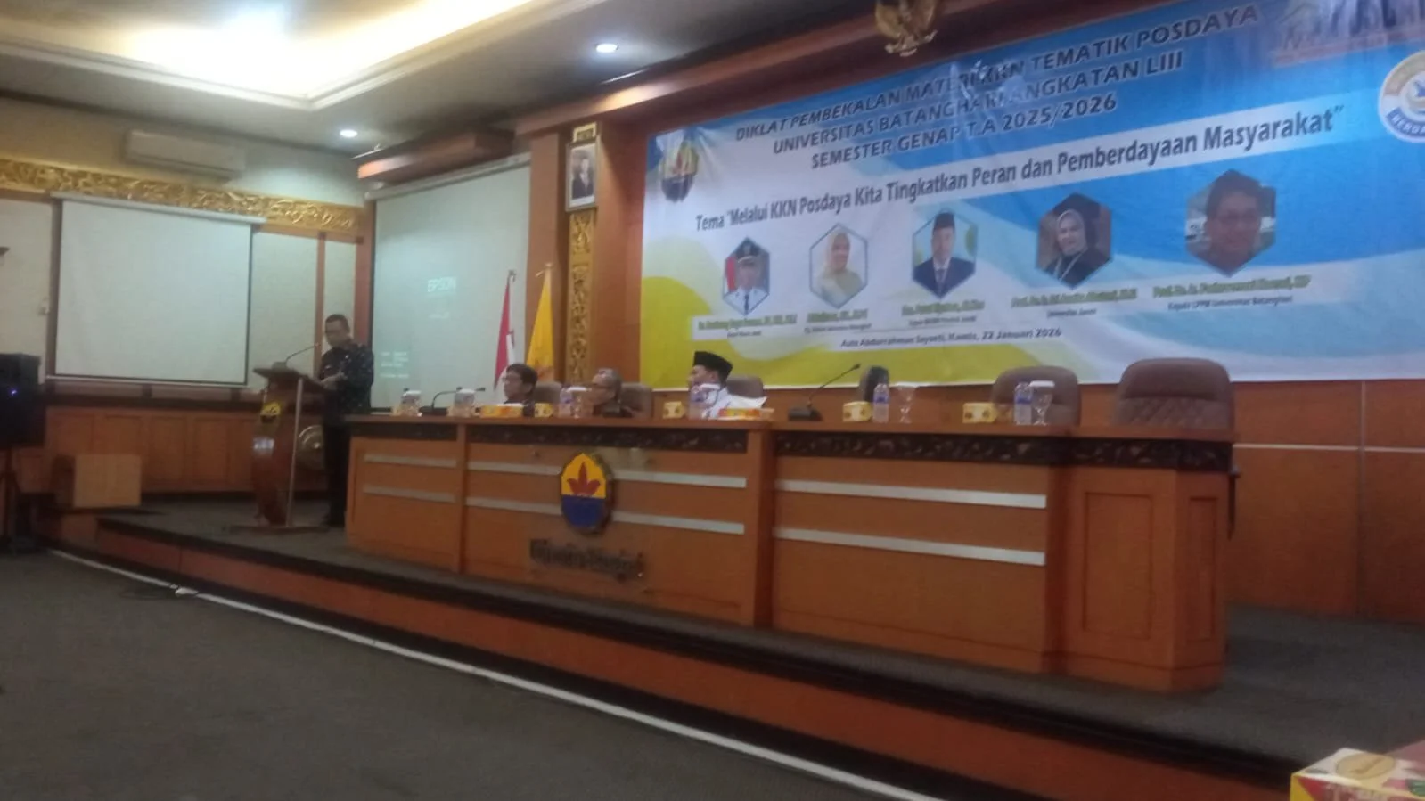 GEMARI.ID-JAMBI. KKN Tematik Posdaya adalah gagasan besar dari Prof Dr Haryono Suyono saat menjadi Ketua Yayasan Dana Sejahtera Mandiri (Damandiri). Universitas Batanghari Jambi (Unbari) sampai saat ini masih dan terus berkomitmen melaksanakan KKN Tematik Posdaya sampai di Angkatan 53 Tahun 2026 ini. Kemarin, bertempat di kampus Unbari sedang dilaksanakan pembekalan/diklat, yang dihadiri oleh Kepala Perwakilan Kementerian Kependudukan dan Pembangunan Keluarga /BKKBN Provinsi Jambi, Drs Putut Riyatno, MKes dan Bupati Muaro Jambi, Bambang Bayu Suseno, demikian disampaikan Ketua Lembaga Penelitian dan Pengabdian kepada Masyarakat (LPPM) Universitas Batanghari Prof Dr Ir Fachroerrozi Hoesni, MP, kepada Tim GEMARI.ID melalui pesan singkatnya kemarin. Kamis (22/01/2026).