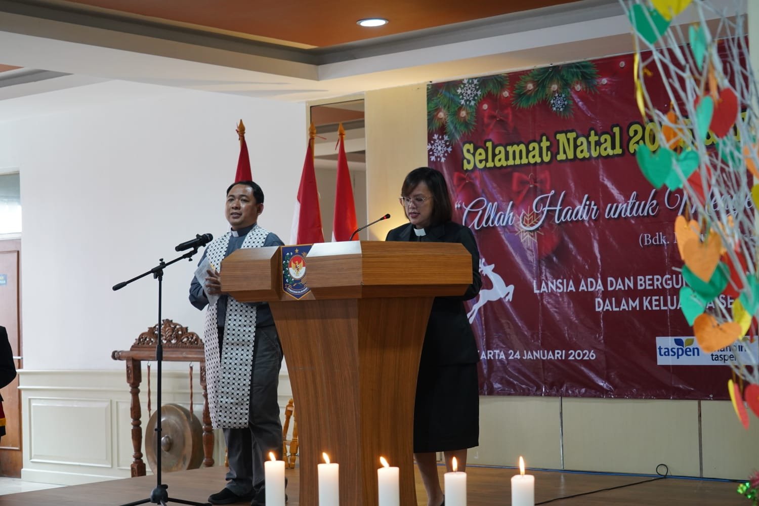 GEMARI.ID-JAKARTA. Bertempat di Aula Badan Pengembangan Sumber Daya Manusia (BPSDM) Kementerian Dalam Negeri di kawasan Kalibata Jakarta Selatan, Pengurus Besar Persatuan Wredatama Republik Indonesia atau PB PWRI bersama Organisasi Pensiunan Indonesia Kementerian/Lembaga (OPI-KL) menyelenggarakan Perayaan Natal Bersama. Kegiatan ini bertujuan mempererat kesatuan, persatuan, dan solidaritas antar pensiunan lintas kementerian dalam suasana kebersamaan dan sukacita. Sabtu (24/01/2026).